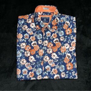 Above Man Men’s Short Sleeve Button-Up Floral Print Size XL Slim Fit Shirt