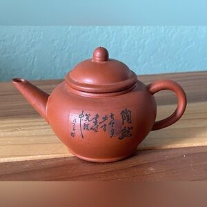 Vintage Small Red Clay Chinese/Asian Teapot w/Handpainted Lettering 3”