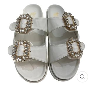 Gemma white Sandals with jeweled buckles camel T Women's 8.