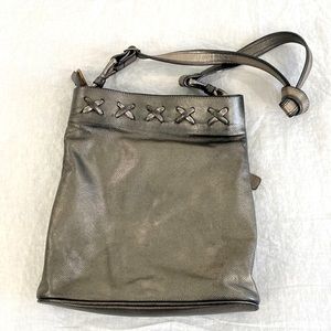 Clarita Silver Metallic Clutch With Charcoal Metal Strap