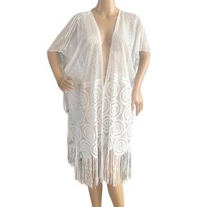 Lace Embroidery Fringe Hem Sheer Boho Shawl cover up one size