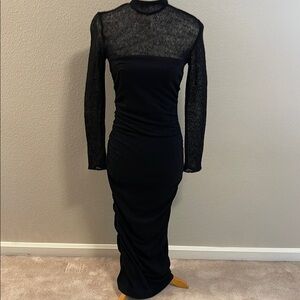 Isabelle Allard Elegant Black Long Sleeve Ruched Maxi Dress Size 38