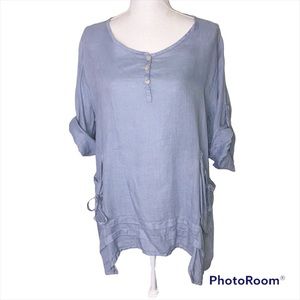 Italian Linen Blue Lagenlook Oversized Tunic Blouse Top Size XS