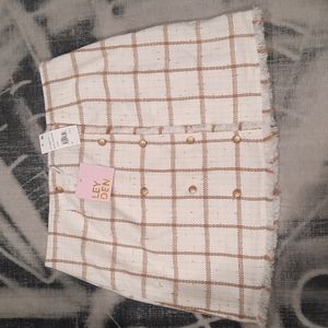 Leyden Monroe Plaid Printed Mini Skirt, Ivory Tan Gold, Large