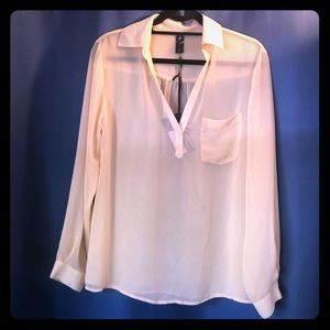NWT M BY MARCUS WHITE POCKET SILK V-NECK TUNIC