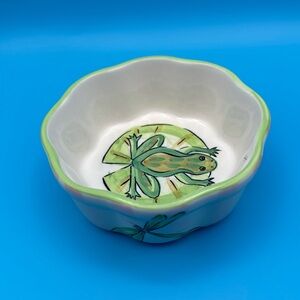 Heather Outlaw MAGNOLIA dragonfly frog lilypad pink white striped scalloped dish