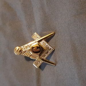 MASONIC PIN gold plated square symbol with blue G. (Freemasonry)(3)