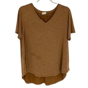 Mod Ref Women’s Brown Short Sleeve Flowy V-Neck Hi/Lo Casual Top Sz XL GUC
