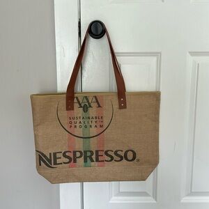 Nespresso Insulated Zipper Travel Cooler Bag Cream Color 10 x 6 x 8 NEW