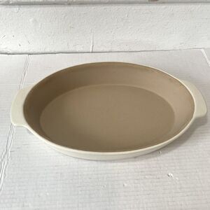 Pampered Chef Tan Stoneware Baking Tray with Blue Grip