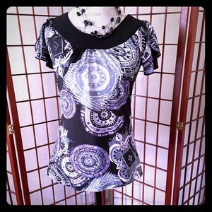 Sera Nade black and white open up the front blouse size XL