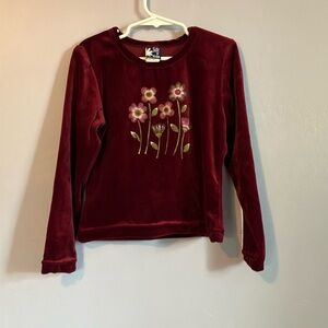 Girls side x side maroon velour flower long sleeve Sz small 7-8