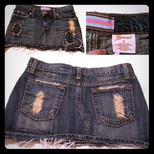 EUC Y2K Smarque Distressed Patched Fringe Cropped Jeans Size 5