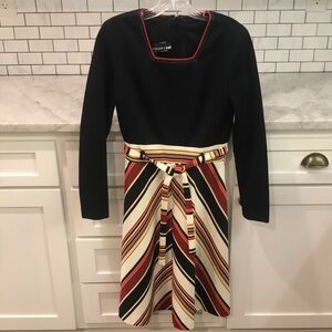 Vintage Strait Line Dress Rockabilly Chevron Striped Multicolor Sheer Ruffle