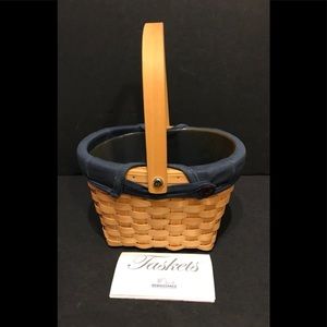 VTG NWT Taskets Renaissance Small Carry All Wood Basket Blue Fabric