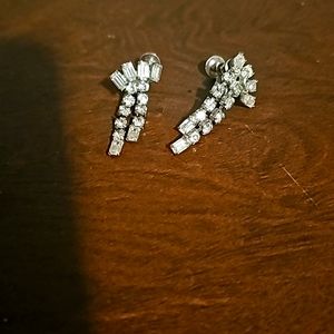 Vintage 1960''s Weiss Rhinestones & Baguette Screw-on Earrings, Silvertone
