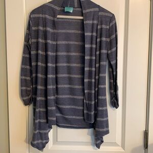 Blue Grey Stripe 3/4 Cinch Sleeve Cardigan