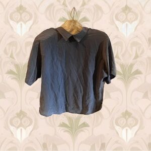 Le Bleu VINTAGE 100% SILK dusky grey/ blue blouse. Buttons up back