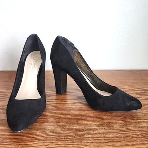 Black pointed toe heels