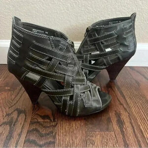 Mia Black Suede Caged Open Toe Lace Up Ankle Heels Women Sz 7