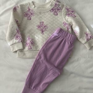 Kate Quinn Bamboo Collection cream tan floral two piece mauve trim size 3-6 mo