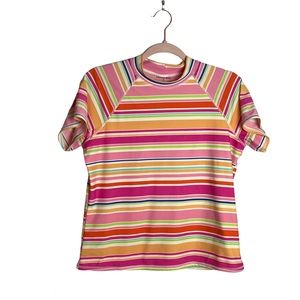 NEW i play. Rashguard Shirt Pink and White Stripes Toddler Girls Size 4T NWT