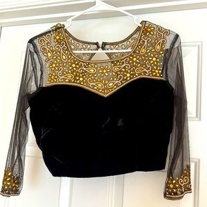 Indian saree blouse Black and Gold Striped Women's Top size XL