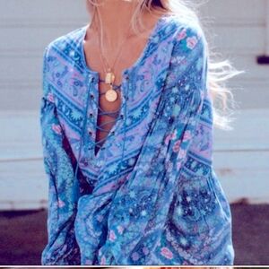 Wintersilks Womens Popover Top Shirt Medium Blue Paisley Silk Blend Boho Career