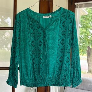 Zara Green Floral Bell Sleeve Top Size L