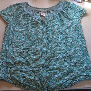 Faded Glory Green floral blouse, Large (12-14)