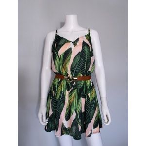 ZAFUL Tropical Leaf Print Cami Mini Dress Size M