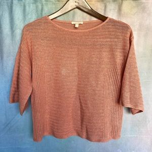EILEEN FISHER 100% Organic Linen Knit Peach Coral Short Bell Sleeve Crop Sweater