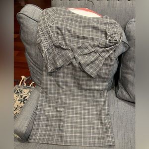 Fitting plaid grey dress, perfect for office or formal wear.