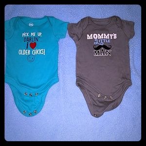 Newborn 2 onesies, 4 bibs, 1 outfit.