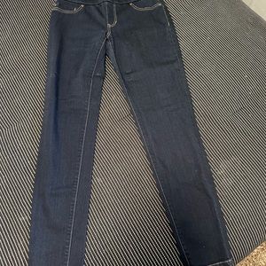 Stretchy ankle-length pants in a pretty silver-gray color.