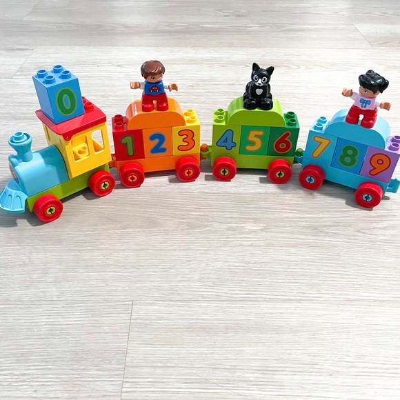 What an awesome Lego Duplo train set! My 18 month old granddaughter loves building things, which I believe has really aided her with developing wonderful eye-hand coordination. I know she’ll love her new (appears to be right out of the box from the factory, no scuffs and very clean) counting train. Vibrant colors , easy to read numbers,and once she’s built her train it’s a toy she will have fun playing with. I’m very happy with this fabulous buy from one awesome seller. Looking forward to going shopping in her closet again soon.