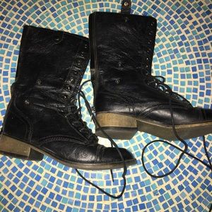 Steve Madden Black Leather Foldover Combat Boots