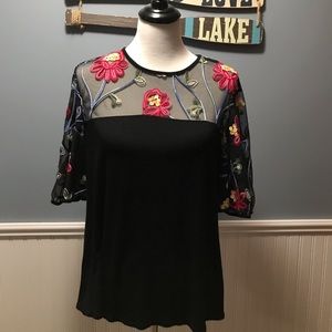 Flowers and lace bell sleeve top