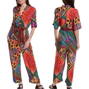 Farm Rio Dotted Patch Scarf Unisex Jumpsuit Size L Multi Tropical Short Sleeve