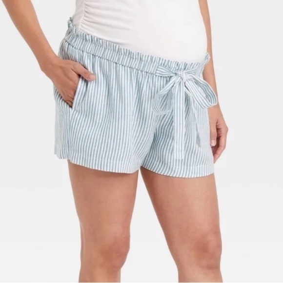 Isabel Maternity by Ingrid & Isabel Pants - Isabel Maternity Mint Green White Stripe Tie Front Linen Blend Pull On Shorts