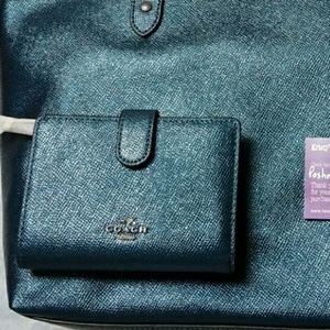 NWT Coach metallic Dark Teal tote