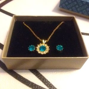 Goldtone teal color necklace& earring set