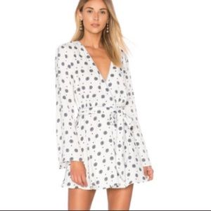 L’academie the wrap mini dress blue medallion