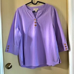 A New Day Purple floral V-neck w/puff sleeves, cropped Size L