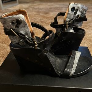 A.S. 98 Black Leather Wedge Sandals size 38
