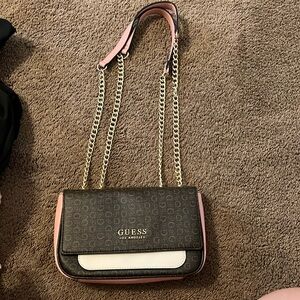Brown/Pink/White Guess brand purse. Able to wear as shoulder bag or crossbody.