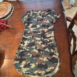 Lark & Ro Dark Green Animal Print Midi Dress