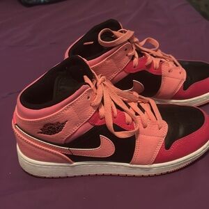 Pink and black Nike Air Jordan’s. Gently used. No marks or scratches.