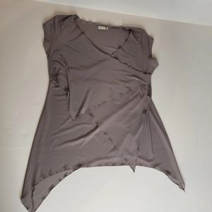 Sympli The Best Cap Sleeve Angled Asymmetrical Hem Grey Taupe Tunic Top Size 10