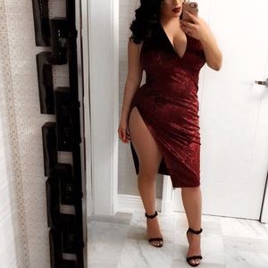 Burgundy Velvet Halter Slit Dress. Size Medium.